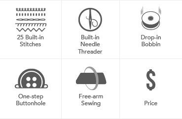 Molly loves her DIY, individual style, and she always encourages you to add your own touch. This multi-purpose machine includes 25 built-in stitches, a drop-in bobbin and a 1-step buttonhole.